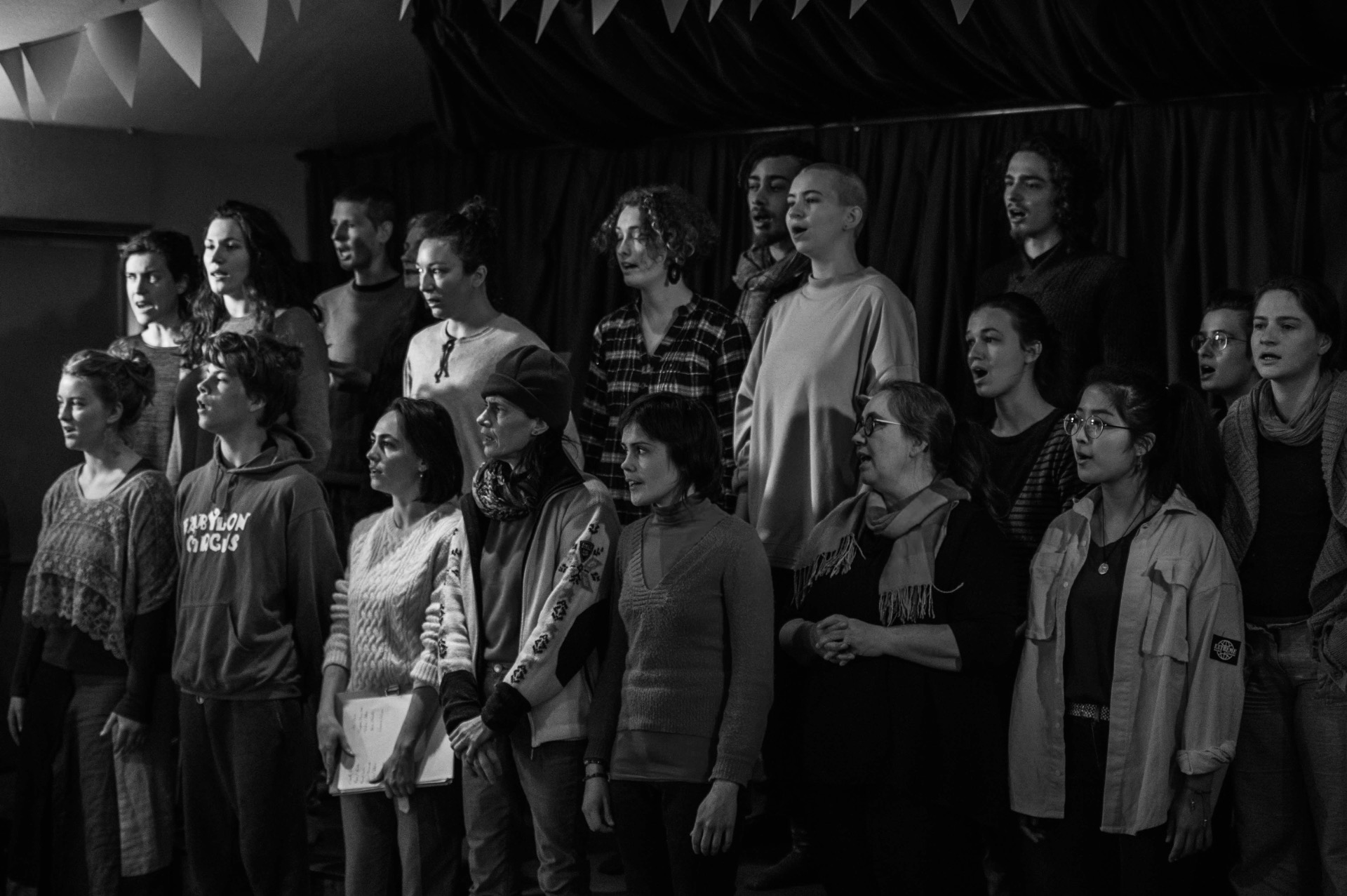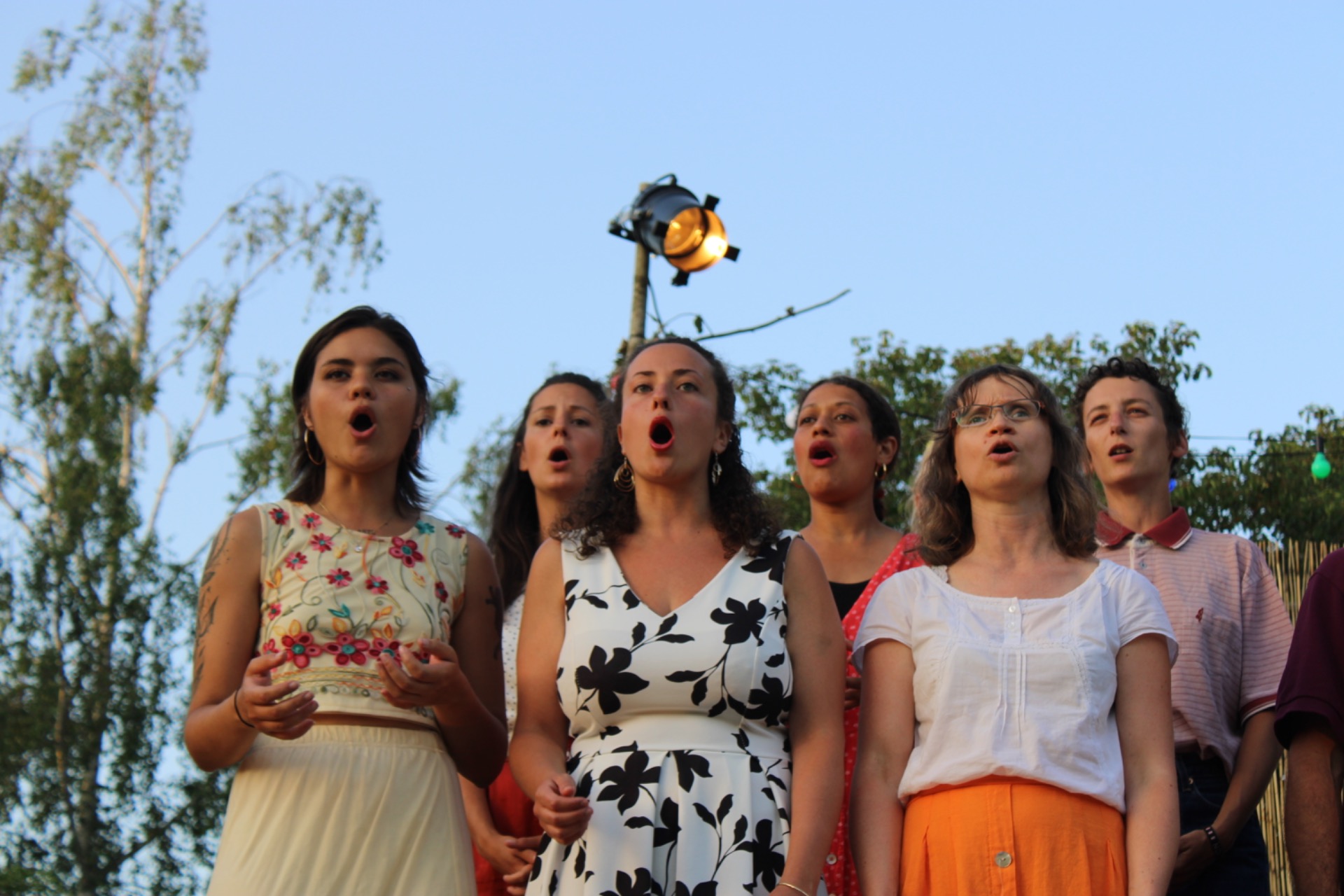 Les séances de chant commencent souvent par des exercices ludiques et des expérimentations sonores lié au moment présent et à la saison. Ces activités permettent de réveiller notre corps dans sa sensibilité musicale, d'assouplir nos voix et d'ouvrir grand nos oreilles. Nous plongons ensuite dans l'exploration vocale de chants polyphoniques, en cherchant simplement à ressentir la musique : ses rythmes, ses harmonies, ses nuances, sa vie. Nul besoin d'être virtuose, il suffit d'entrer dans la joie de chanter.